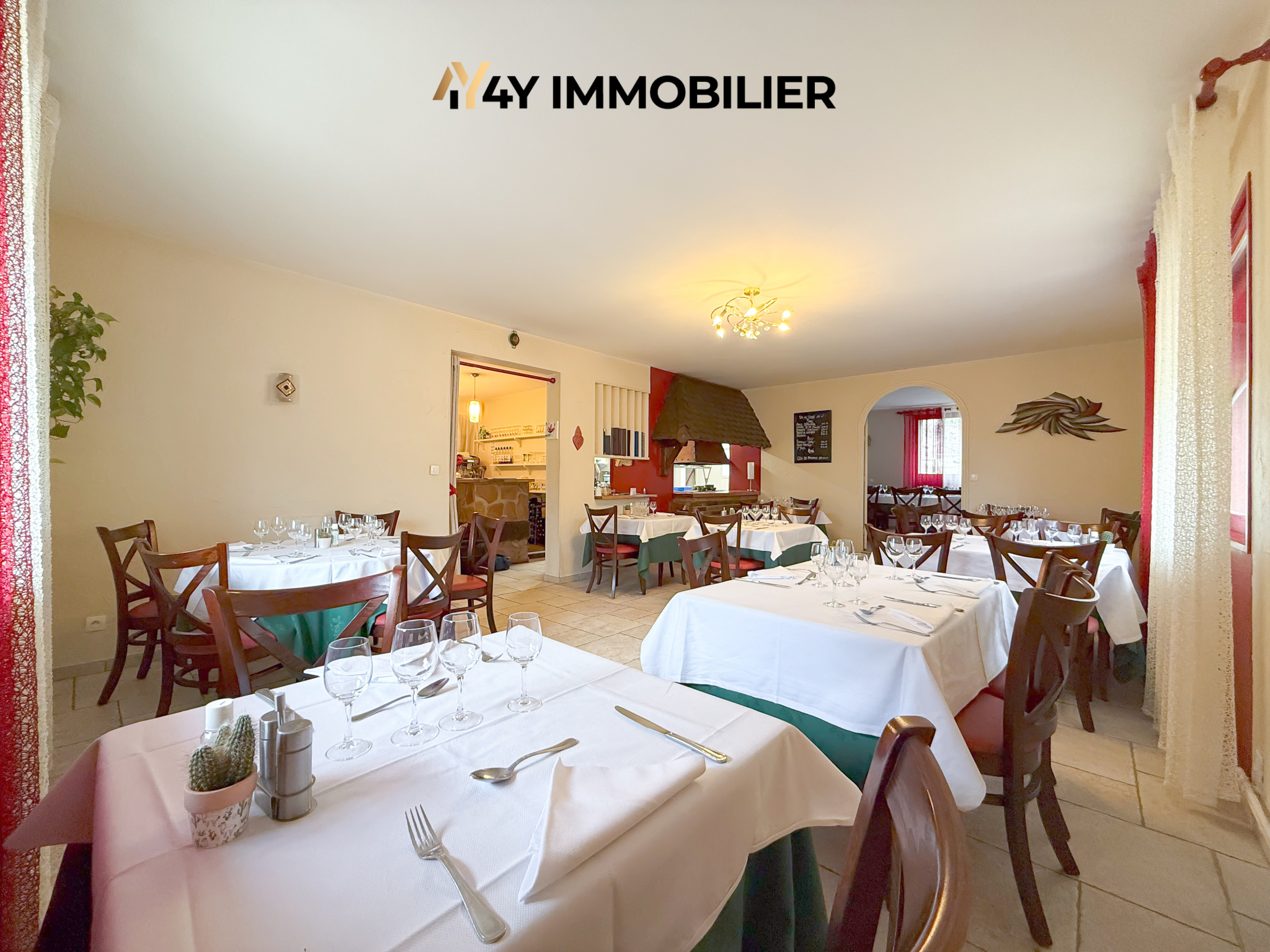 Au premier étage, un appartement relié au restaurant par un escalier propose une grande pièce de vie, une salle d’eau avec W.-C séparés, une buanderie et trois grandes chambres.