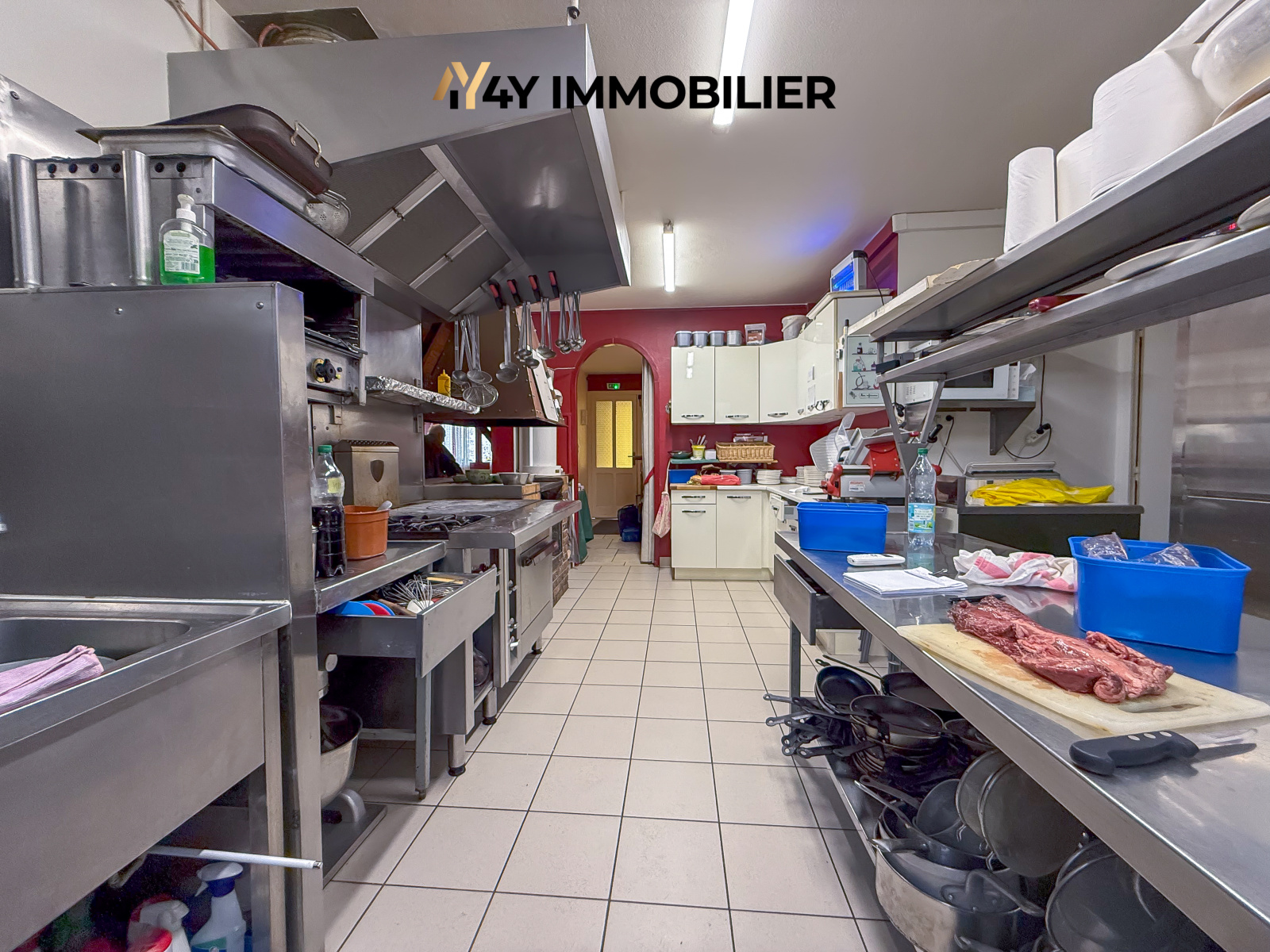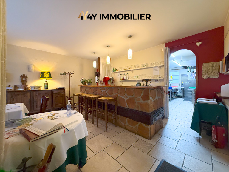 Au premier étage, un appartement relié au restaurant par un escalier propose une grande pièce de vie, une salle d’eau avec W.-C séparés, une buanderie et trois grandes chambres.