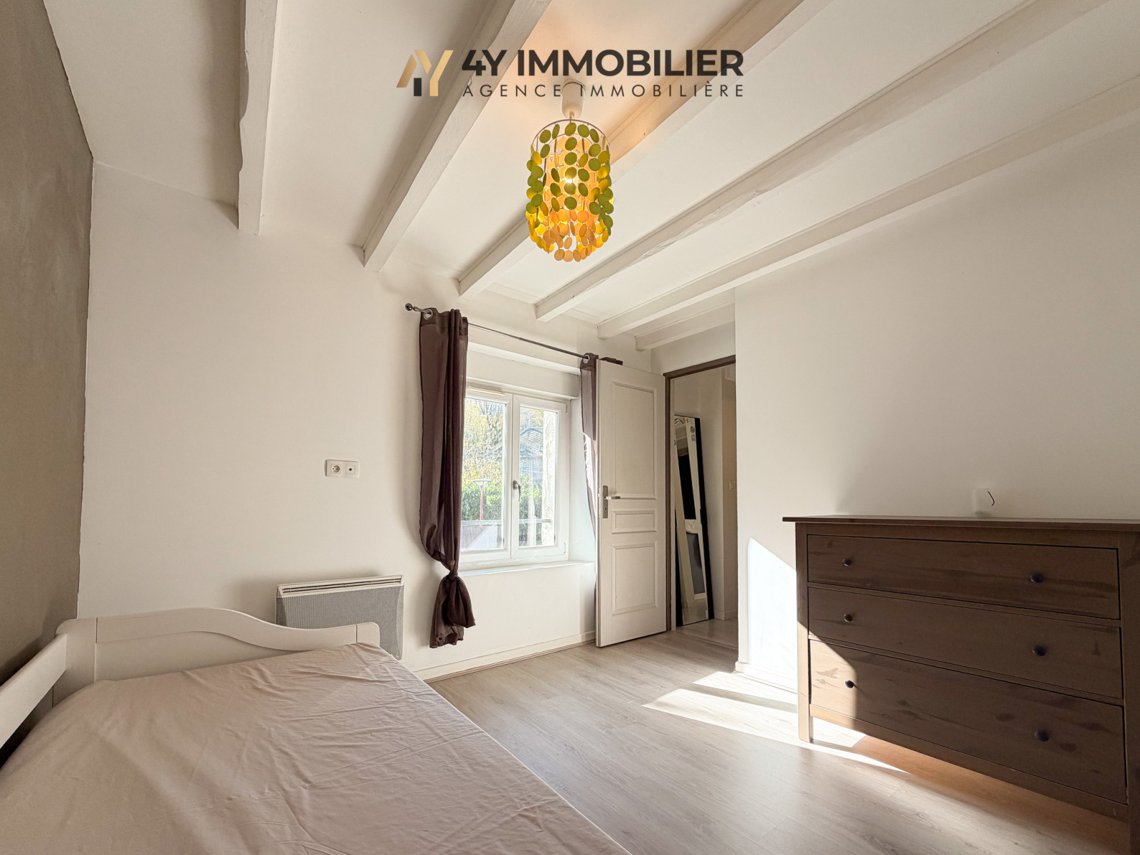 Au rez-de-chaussée, on retrouve une pièce de vie, des sanitaires, ainsi qu’une cuisine ouverte équipée, idéale pour partager des moments conviviaux. Le premier étage avec deux chambres et poutres apparentes, accompagnées d’une salle d’eau avec WC. Enfin, le dernier niveau est dédié à une chambre parentale pleine de charme, dotée de rangements intégrés.