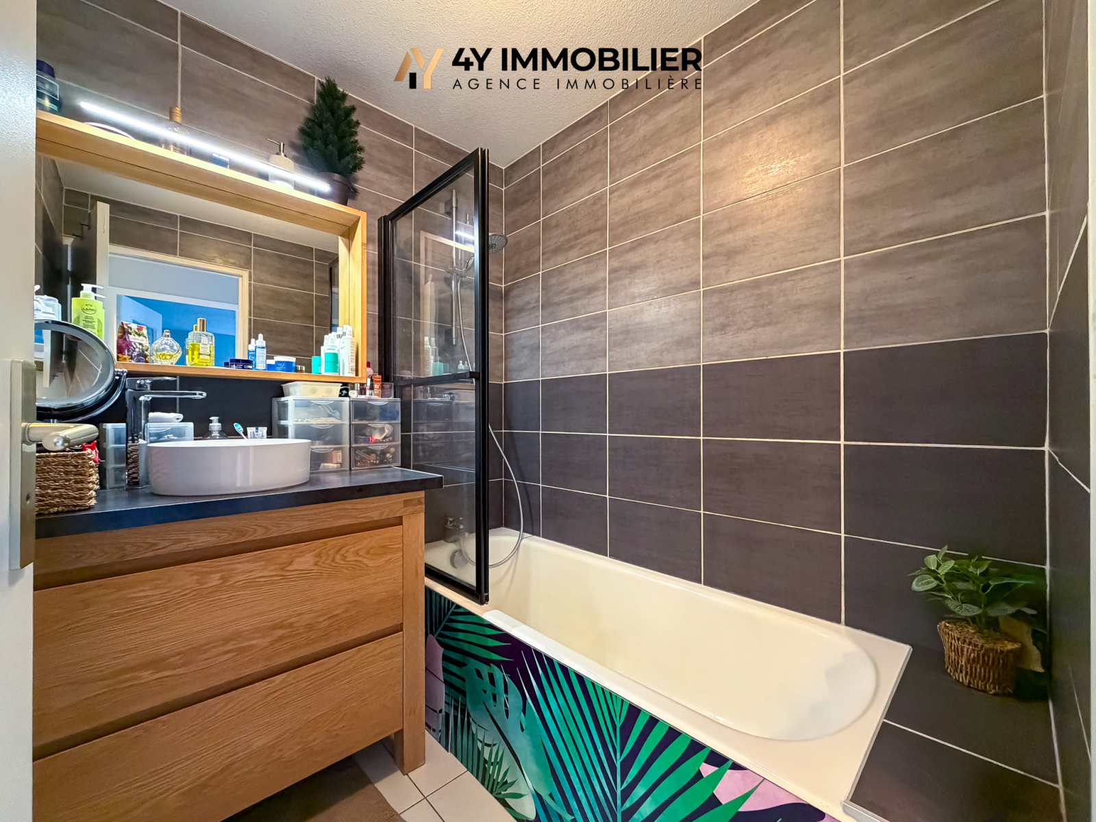 L’entrée donne sur un hall distribuant un sanitaire séparé, une salle d’eau et la chambre disposant d’une large ouverture.
