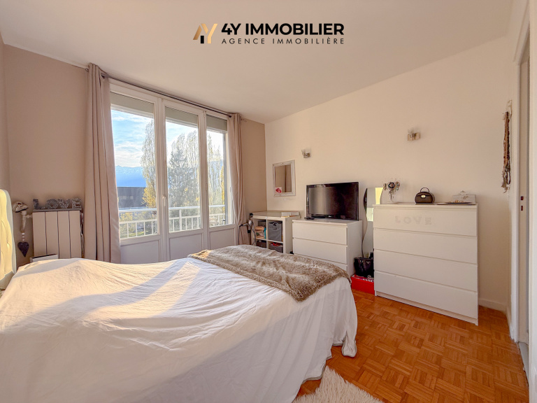 Dès l’entrée, un hall distribue une cuisine équipée indépendante ouvrant sur une loggia. En face, un séjour lumineux aux belles dimensions, baigné de lumière, donne accès à un balcon exposé plein sud avec vue sur les massifs de Belledonne et du Vercors.
