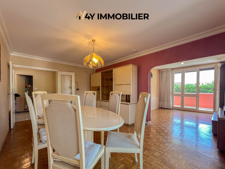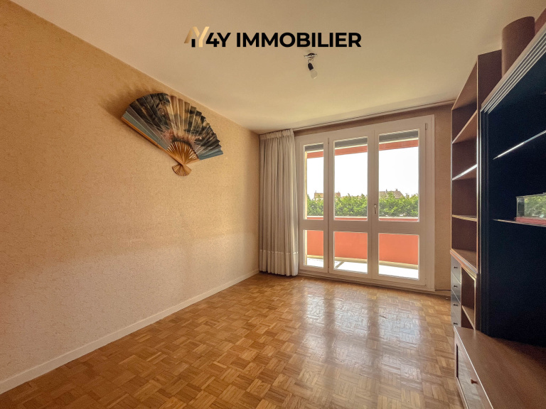 Le bien se compose d'un double séjour lumineux avec accès balcon, d'une cuisine équipée donnant sur la loggia, de deux chambres dont une récemment rénovée, ainsi que d'une salle de bains et des sanitaires séparés.